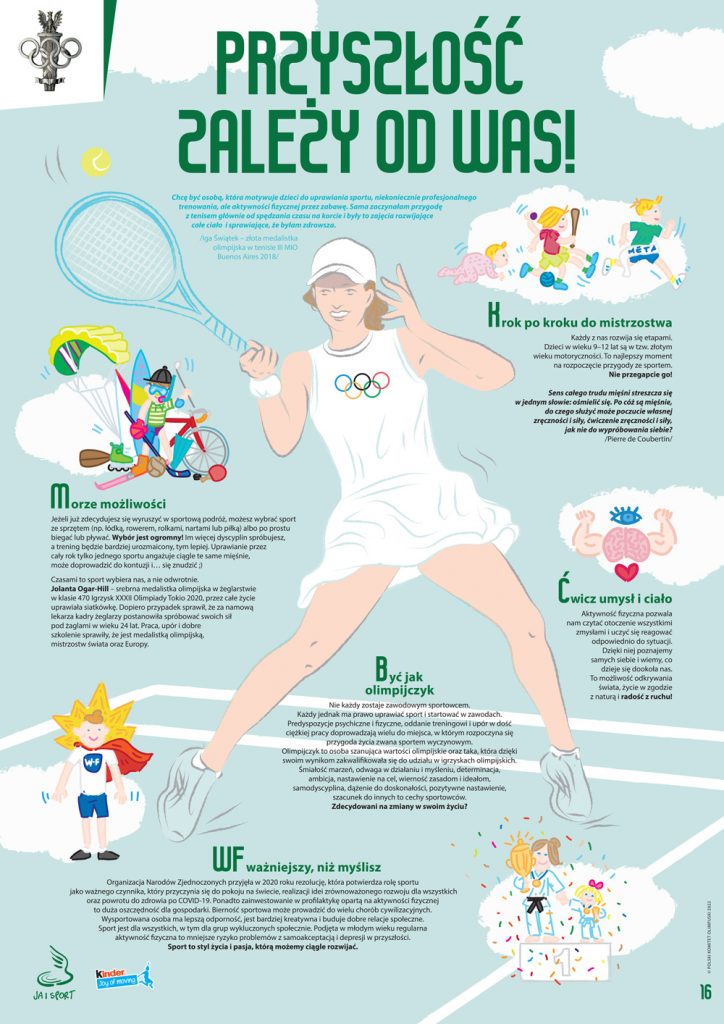 - PUBLIKACJA „ZJEDNOCZENI W MARZENIACH”- 17 inspirujących wywiadów z polskimi mistrzami olimpijskimi zawiera mnóstwo wskazówek dla rodziców dotyczących wychowania poprzez sport oraz podpowiedzi jak połączyć treningi z nauką w szkole