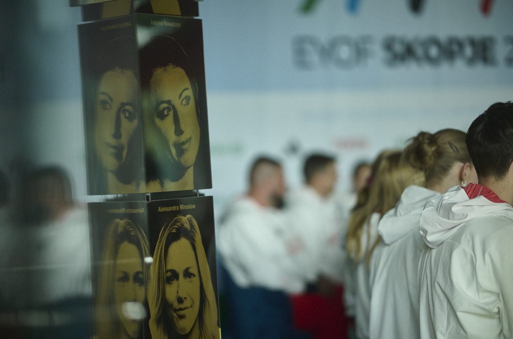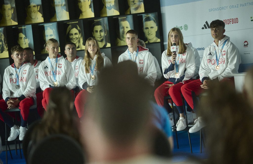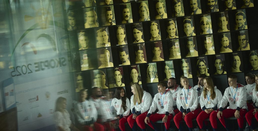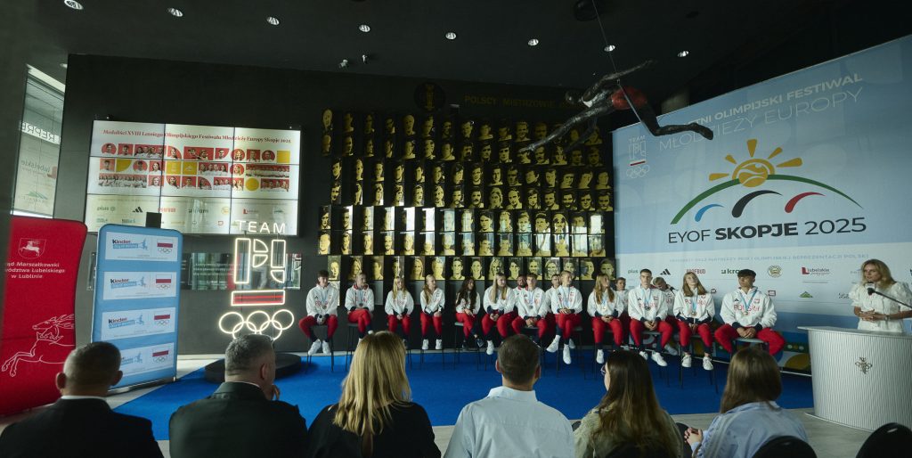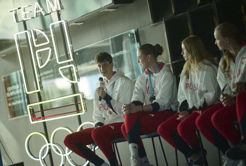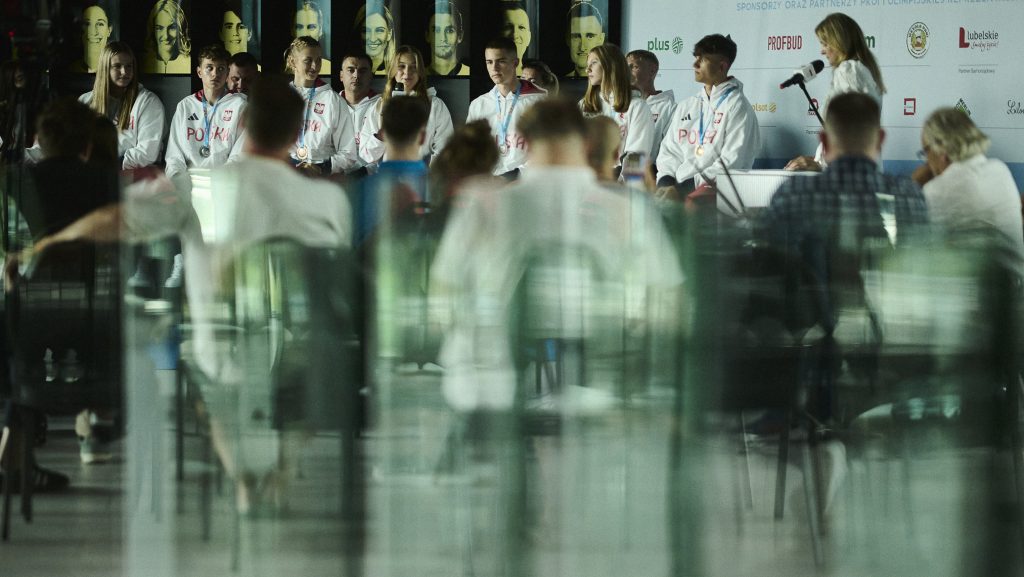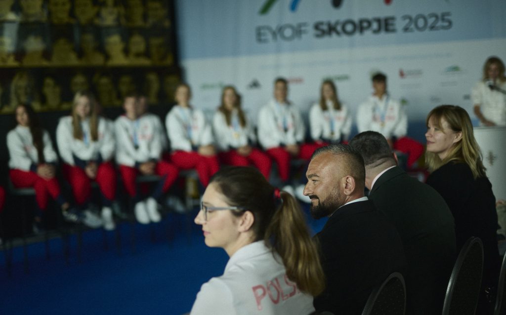 W siedzibie Polskiego Komitetu Olimpijskiego pojawiła się tylko część naszych medalistów, ponieważ sezon w pełni. Spośród 55 sportowców, którzy w Macedonii Północnej stanęli na podium, w PKOl pojawiło się jedenaścioro oraz czworo trenerów: lekkoatleci: Nikodem Dymiński (złoto/bieg na 100 m) oraz Łukasz Mantyk – team leader ekipy lekkoatletycznej i trener Nikodema, Amelia Gibas (złoto/rzut oszczepem), Aleksandra Sochacka (złoto/skok w dal), Wiktor Jaroszewicz (brąz/skok o tyczce), Kinga Jackowska (srebro/pchnięcie kulą) z trenerem Maciejem Bukowieckim, Michał Gajdus (brąz/2000 m z przeszkodami) z trenerką Kingą Pilarską, Zofia Tomczyk, Aleksandra Przybylska, Maja Gondek (wszystkie trzy brąz/sztafeta szwedzka), Helena Danielewicz (złoto/koszykówka 3×3) z trenerem Bartłomiejem Koziatkiem, Nelly Adamczewska (brąz/siatkówka) i Wiktor Raczyński (złoto/siatkówka) – kapitan drużyny.