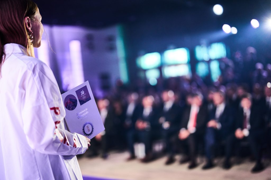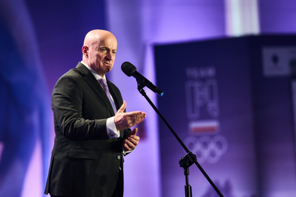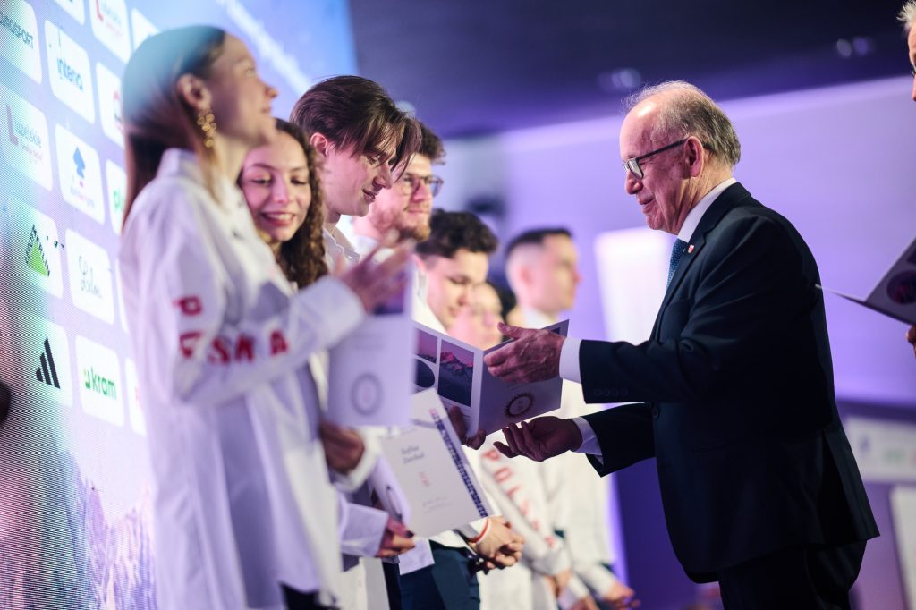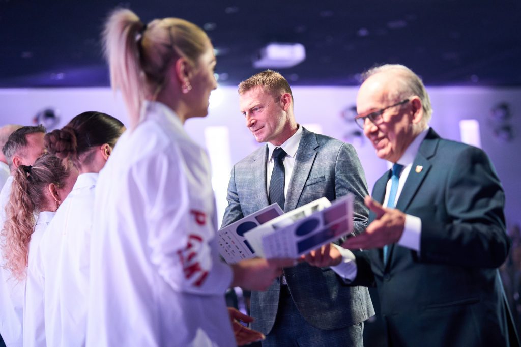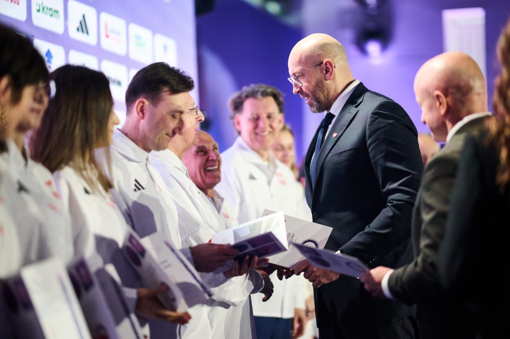 W tej ważnej uroczystości uczestniczył także Minister Sportu i Turystyki. – Drodzy zawodnicy i zawodniczki – wspaniale wyglądacie, wspaniale się prezentujecie i myślę, tak jak wszyscy tutaj jesteśmy, chcemy Wam przekazać wspaniałą, najlepszą energię, wspaniałą polską energię. Wiem, że to jest dla Was najważniejszy dzień w życiu, bo przecież, gdy zaczynaliście marzyć o tym, żeby być sportowcem, to właśnie oglądaliście tych największych, Kamila Stocha, Adama Małysza, Pana Fortunę i wielu innych wspaniałych medalistów i marzyliście. A dzisiaj, dzięki Waszej wieloletniej konsekwencji, niesamowitej pracy jesteście tutaj, w Polskim Komitecie Olimpijskim. Cała Polska patrzy na Was, ale też to, co najważniejsze, cała Polska jest z Was bardzo dumna. Pamiętajcie o tym. (…) Jesteście najpiękniejszymi ambasadorami Polski. Bardzo się cieszę i jestem z tego dumny, że na pewno dacie z siebie wszystko – powiedział Minister Sportu i Turystyki Jakub Rutnicki.