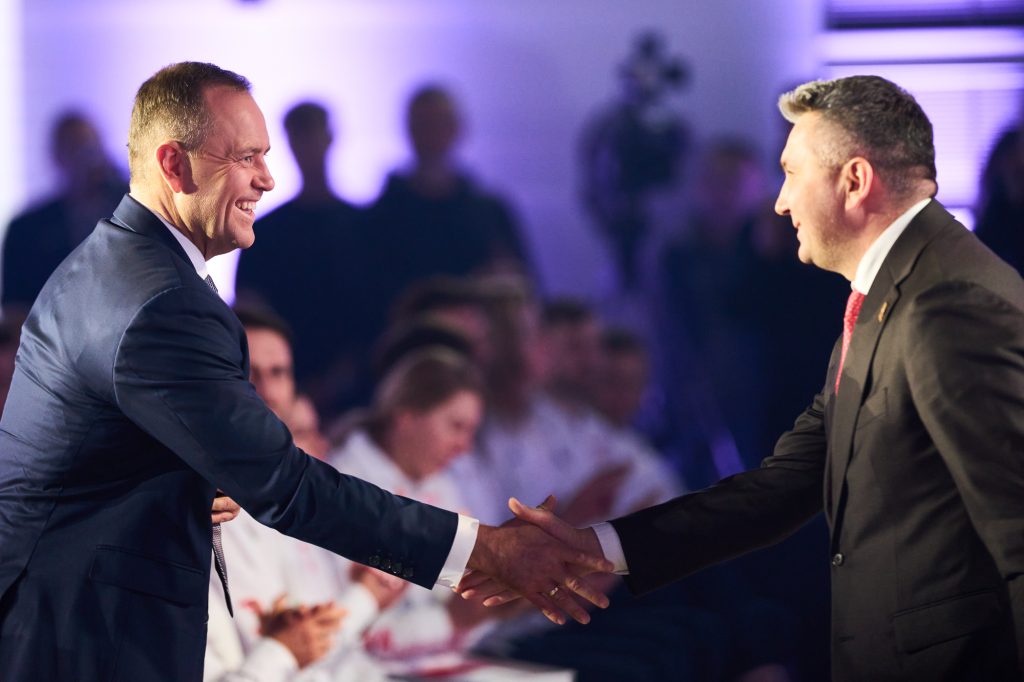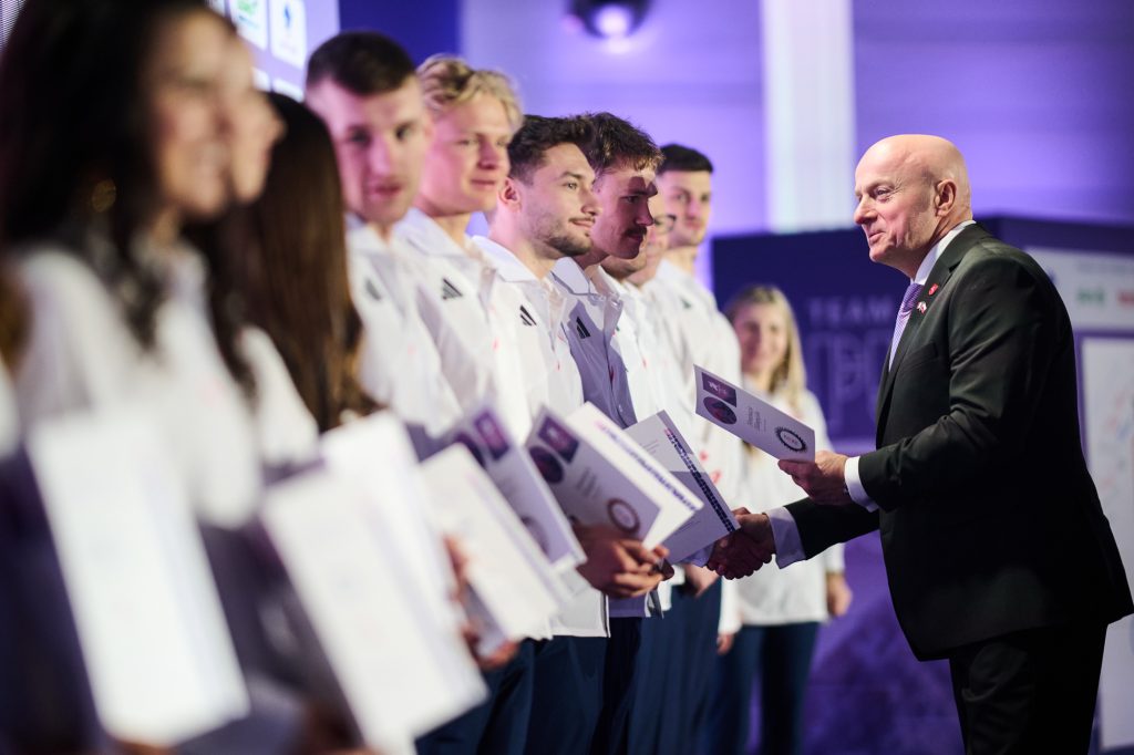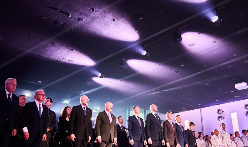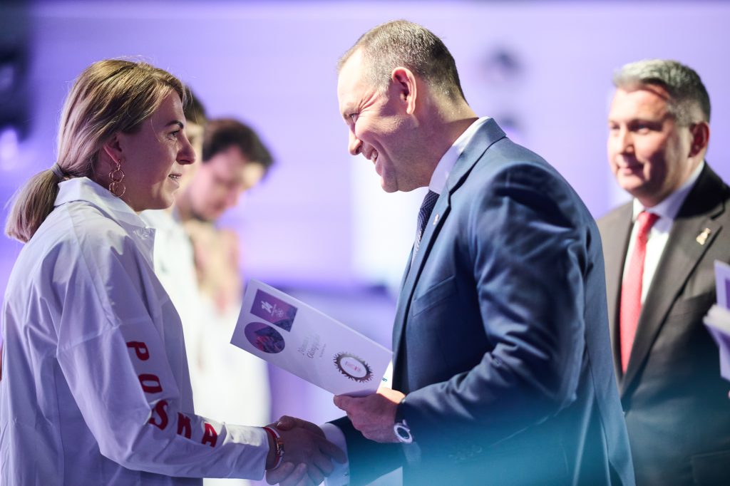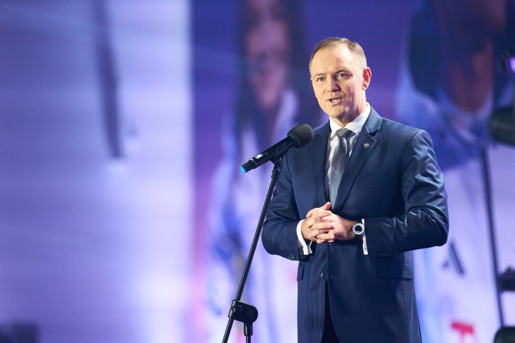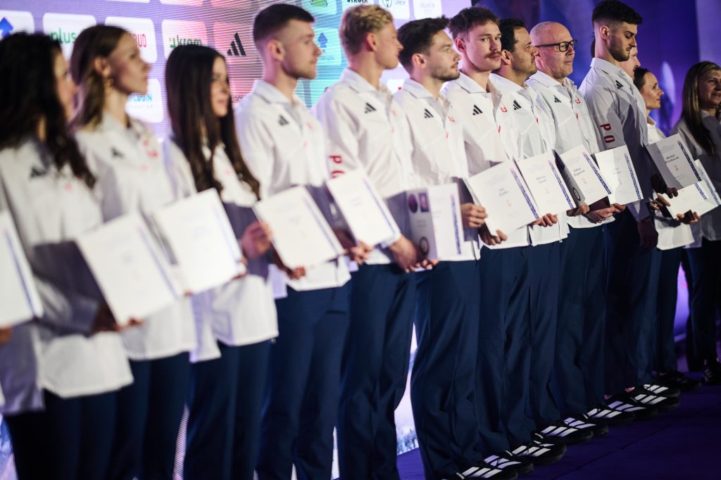 W tej ważnej uroczystości uczestniczył także Minister Sportu i Turystyki. – Drodzy zawodnicy i zawodniczki – wspaniale wyglądacie, wspaniale się prezentujecie i myślę, tak jak wszyscy tutaj jesteśmy, chcemy Wam przekazać wspaniałą, najlepszą energię, wspaniałą polską energię. Wiem, że to jest dla Was najważniejszy dzień w życiu, bo przecież, gdy zaczynaliście marzyć o tym, żeby być sportowcem, to właśnie oglądaliście tych największych, Kamila Stocha, Adama Małysza, Pana Fortunę i wielu innych wspaniałych medalistów i marzyliście. A dzisiaj, dzięki Waszej wieloletniej konsekwencji, niesamowitej pracy jesteście tutaj, w Polskim Komitecie Olimpijskim. Cała Polska patrzy na Was, ale też to, co najważniejsze, cała Polska jest z Was bardzo dumna. Pamiętajcie o tym. (…) Jesteście najpiękniejszymi ambasadorami Polski. Bardzo się cieszę i jestem z tego dumny, że na pewno dacie z siebie wszystko – powiedział Minister Sportu i Turystyki Jakub Rutnicki.