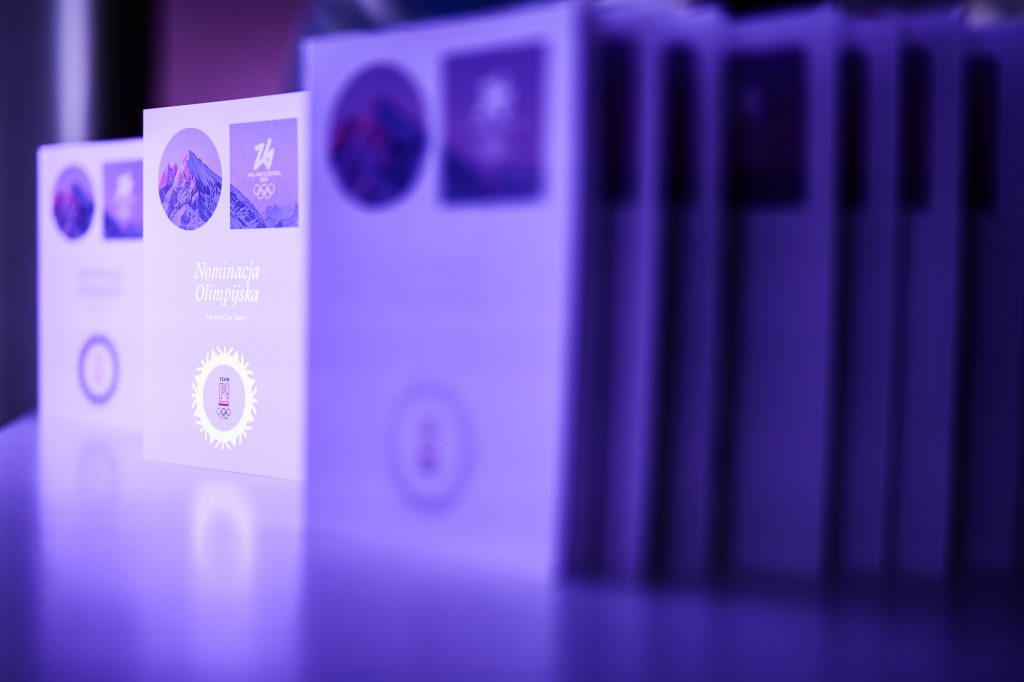 Jednak jednym z dwóch najważniejszych punktów piątkowego programu było wręczenie nominacji, które odebrali przedstawiciele: łyżwiarstwa szybkiego, short tracku, saneczkarstwa, biathlonu, bobslei, narciarstwa alpejskiego, łyżwiarstwa figurowego i misji olimpijskiej. Każdy sportowiec po odebraniu powołania do Olimpijskiej Reprezentacji Polski, złożył swój podpis na fladze Team PL. Zainaugurował to Prezydent RP.