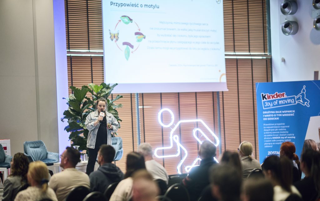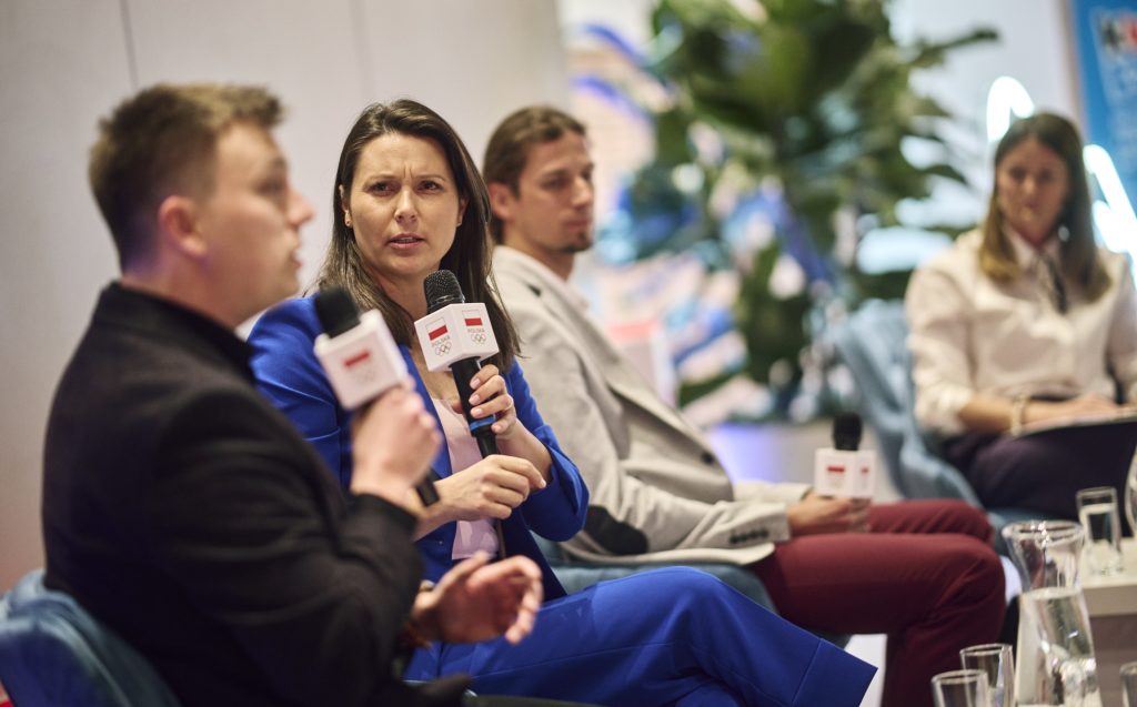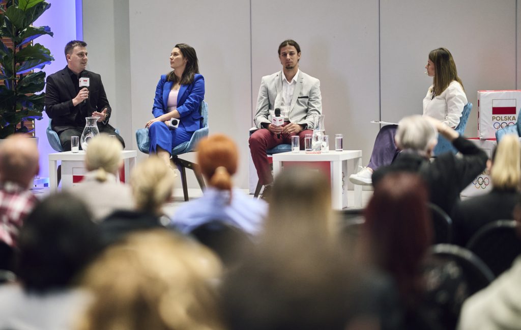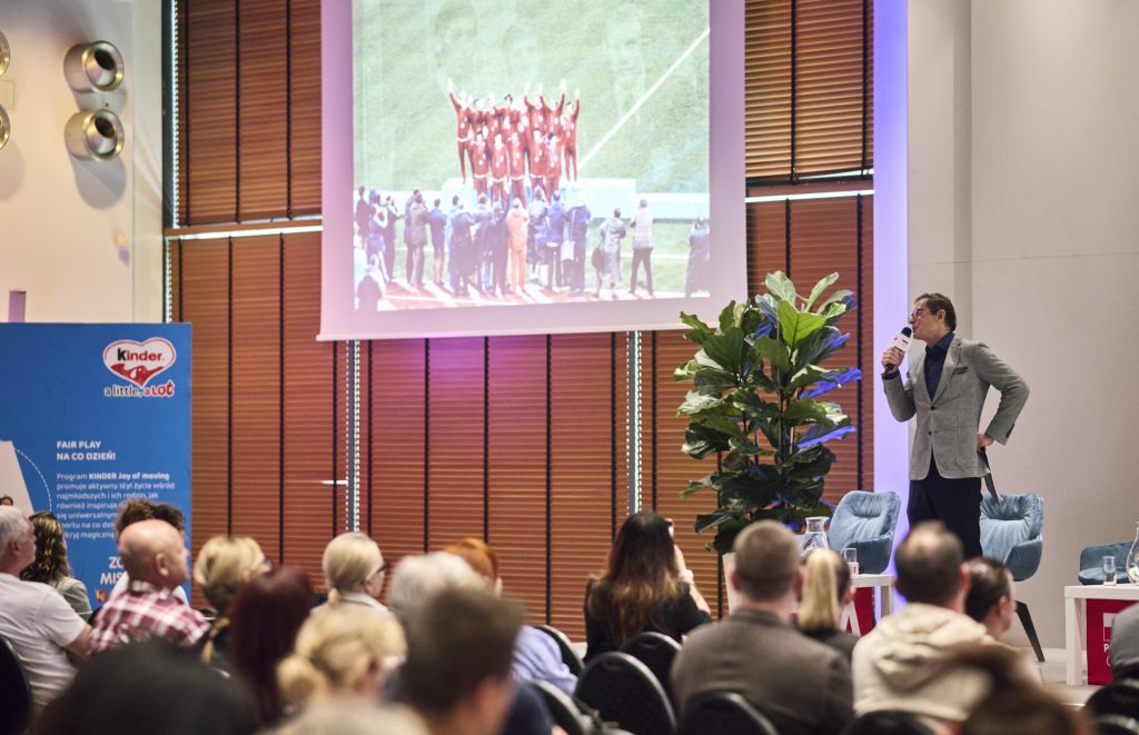 Rozmowy ze sportowcami wokół projektów Polskiego Związku Siatkówki oraz Polskiego Związku Tenisowego przedstawili Klaudia Jans-Ignacik (olimpijka w tenisie), Paweł Marciszewski (trener tenisa) oraz Mariusz Prudel (olimpijczyk w siatkówce plażowej). Projekty KINDER Joy of moving, o których mowa to Tenisowa Talentiada, Tenis Trophy oraz projekt Minisiatkówki. W rozmowie na temat wartości sportów zespołowych udział wzięli: przedstawicielki rugby 7 (Ilona Zaishliuk, Tamara Czumer-Iwin – srebrne medalistki Igrzysk Europejskich), Przemysław Odrobny – hokeista oraz Mateusz Szlachetka – koszykarz (brązowy medalistka w koszykówce 3×3 Igrzysk Europejskich). Obie rozmowy były bardzo ciekawe, otwierające na potencjał pracy z dziećmi i młodzieżą oraz prezentujące walory sportów zespołowych kształtujące charakter, morale i poczucie własnej wartości.