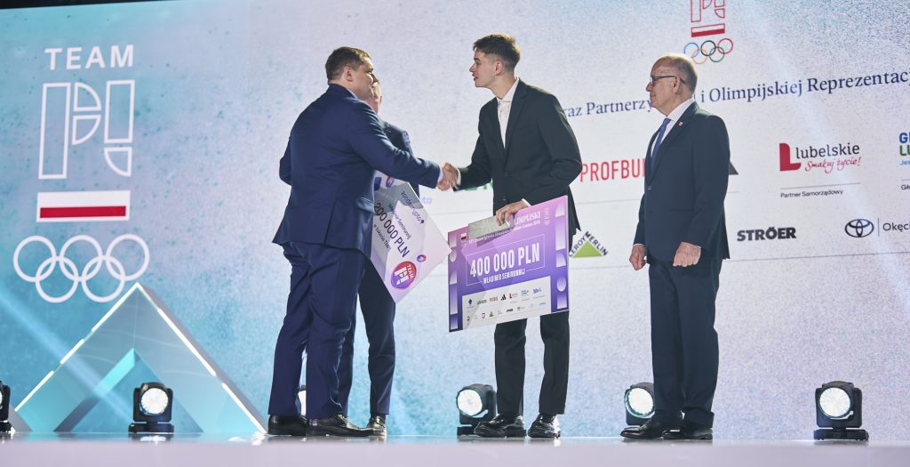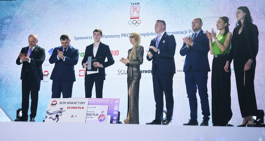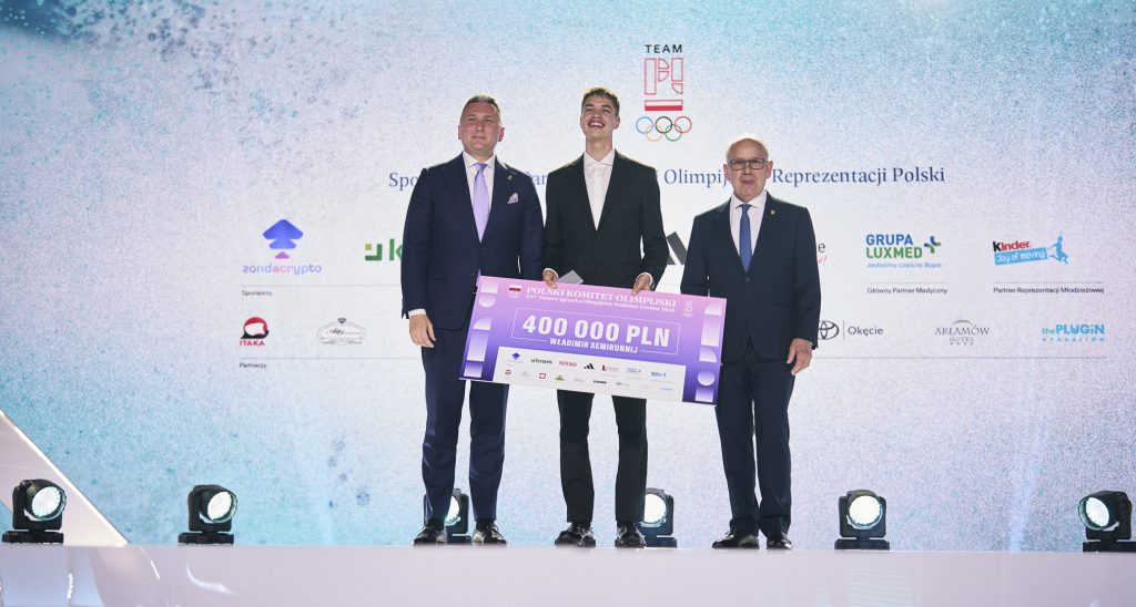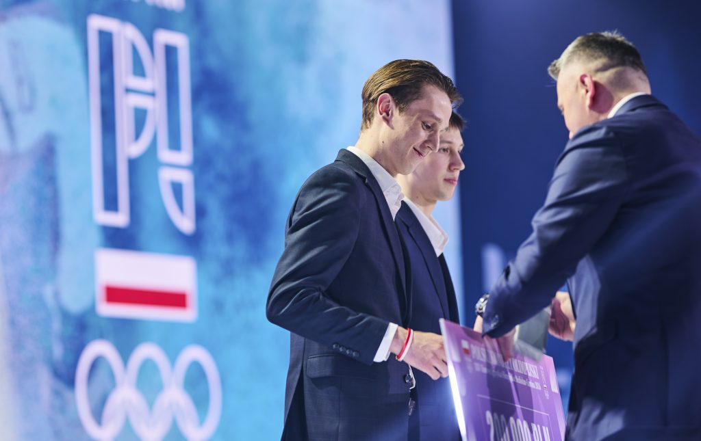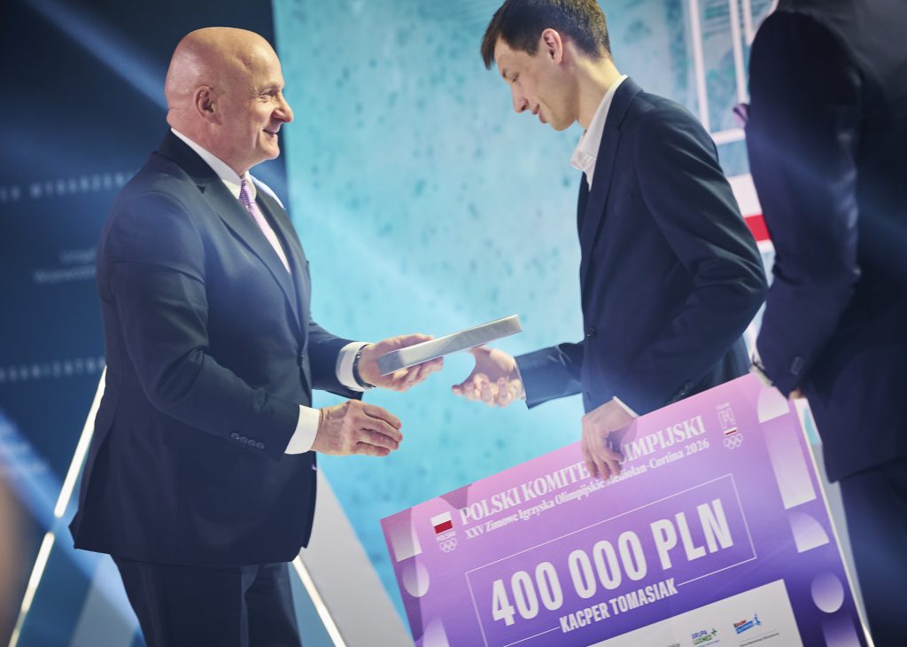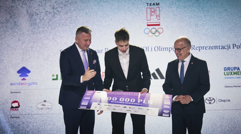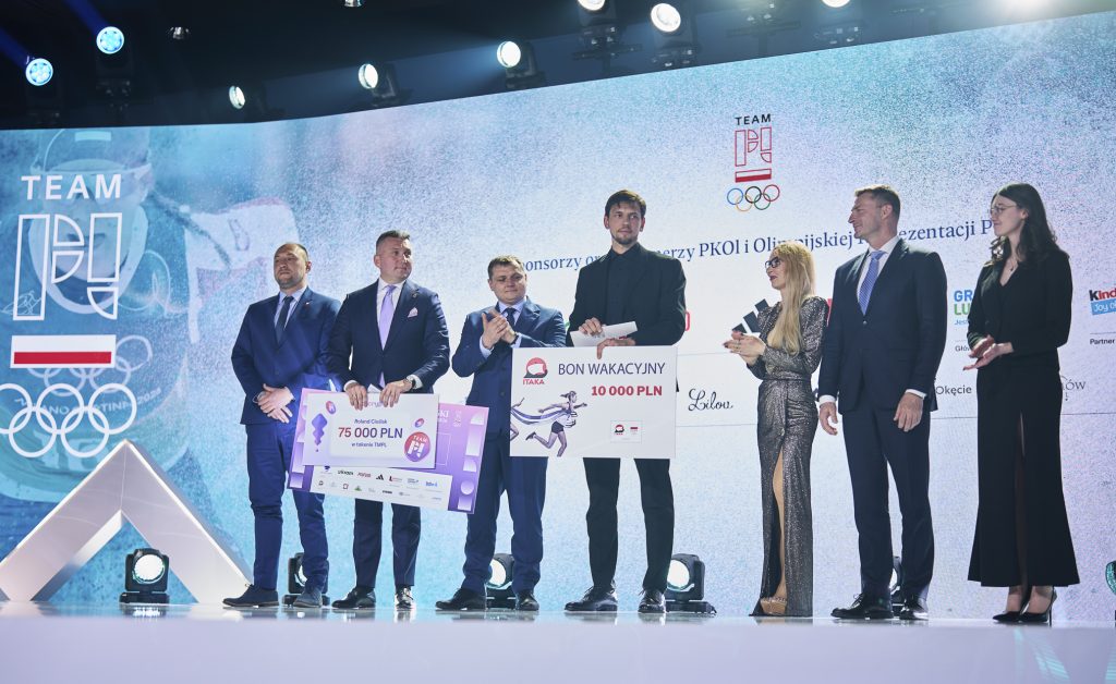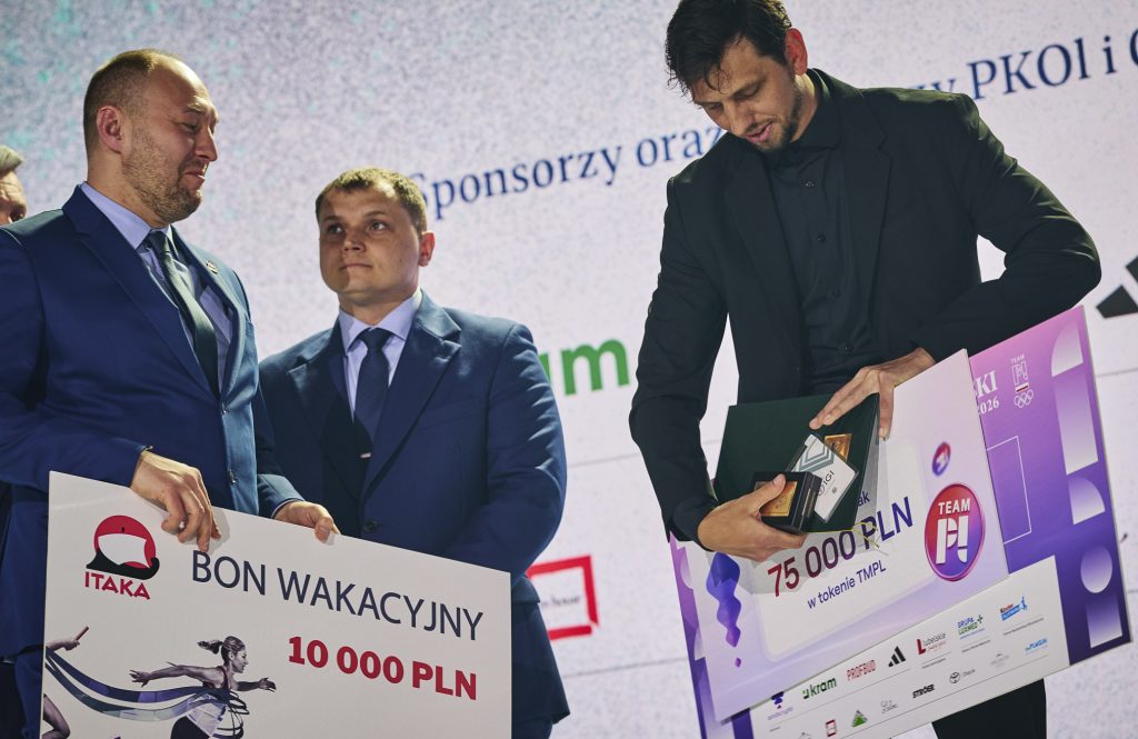 Czek na 400 tys. PLN, równowartość 200 tys. PLN w tokenach TMPL, voucher na wakacje od ITAKA o wartości 10 tys. PLN, diament od ATT INVESTMENTS o wartości 7 tys. PLN, obraz od Art in house, biżuterię od Lilou o wartości 2 tys. PL, złotą kartę VIP do sieci kin Helios oraz zegarek SWATCH limitowanej serii Mediolan-Cortina 2026 dedykowany Team PL przyjął z kolei wicemistrz olimpijski w łyżwiarstwie szybkim na dystansie 10 tys. metrów – Władimir Semirunnij.