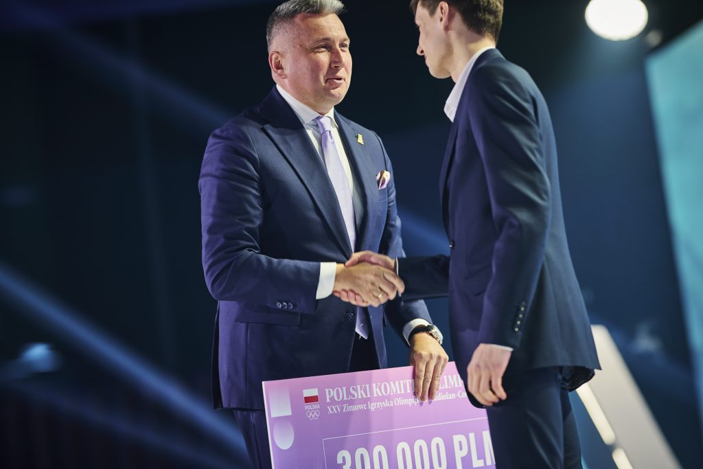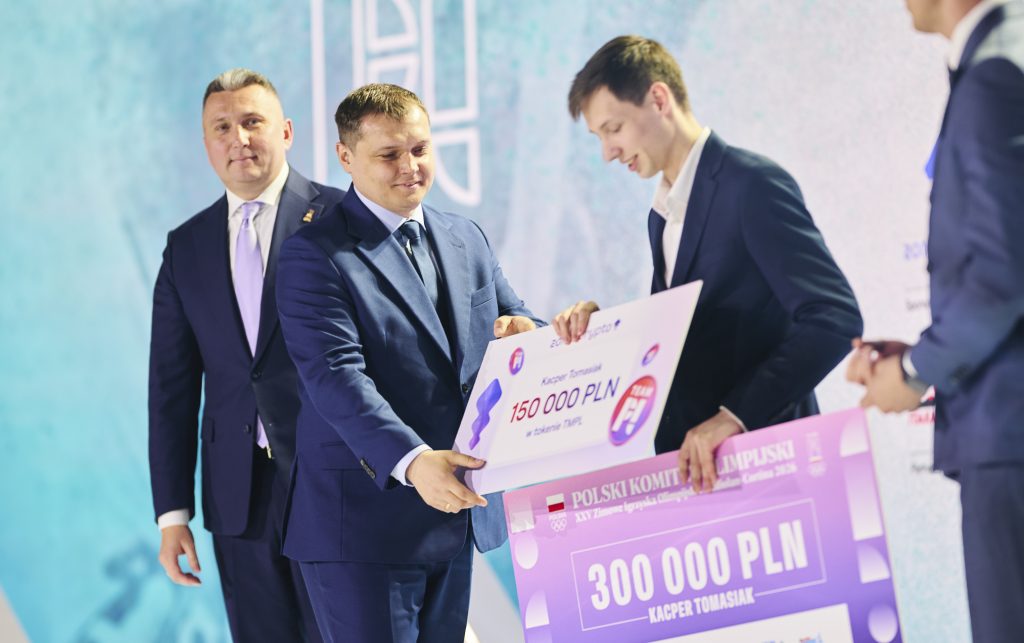 Trzeci nasz medalista olimpijski – skoczek narciarski Paweł Wąsek, który wraz z Kacprem Tomasiakiem wywalczył srebro w konkursie duetów otrzymał: Czek na 200 tys. PLN, równowartość 200 tys. PLN w tokenach TMPL, voucher na wakacje od ITAKA o wartości 10 tys. PLN, diament od ATT INVESTMENTS o wartości 7 tys. PLN, obraz od Art in house, biżuterię od Lilou o wartości 2 tys. PL, złotą kartę VIP do sieci kin Helios oraz zegarek SWATCH limitowanej serii Mediolan-Cortina 2026 dedykowany Team PL.