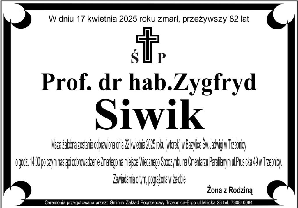 Z głębokim smutkiem informujemy, że 17 kwietnia 2025 roku zmarł prof. dr hab. Zygfryd Siwik, były Prezes Trybunału Arbitrażowego ds. Sportu przy Polskim Komitecie Olimpijskim.